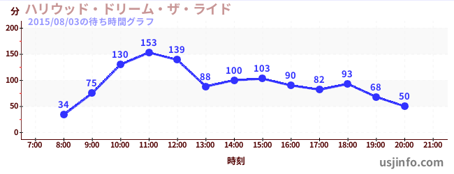 • ハリウッド・ドリーム・ザ・ライド$B$N(B2015年08月03日の待ち時間