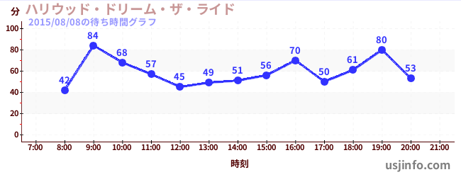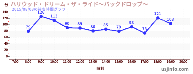 • ハリウッド・ドリーム・ザ・ライド〜バックドロップ〜$B$N(B2015年08月08日の待ち時間