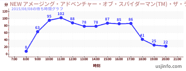 • NEW アメージング・アドベンチャー・オブ・スパイダーマン(TM)・ザ・ライド 4K3D$B$N(B2015年08月08日の待ち時間