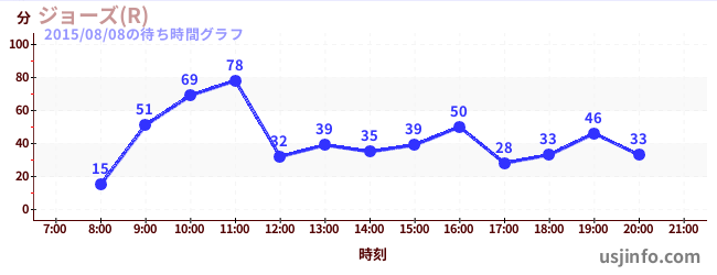 • ジョーズ(R)$B$N(B2015年08月08日の待ち時間