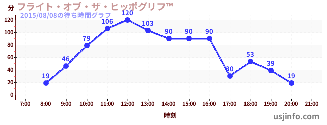 • フライト・オブ・ザ・ヒッポグリフ™$B$N(B2015年08月08日の待ち時間