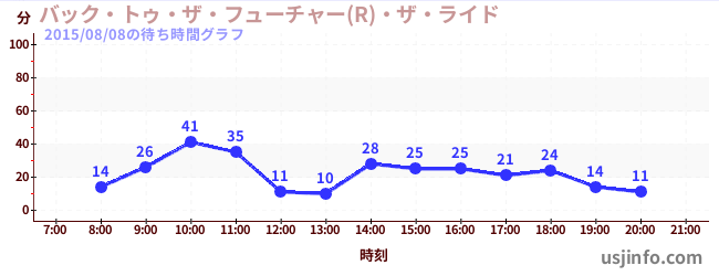 • バック・トゥ・ザ・フューチャー(R)・ザ・ライド$B$N(B2015年08月08日の待ち時間