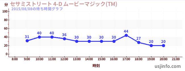 • セサミストリート 4-D ムービーマジック(TM)$B$N(B2015年08月08日の待ち時間