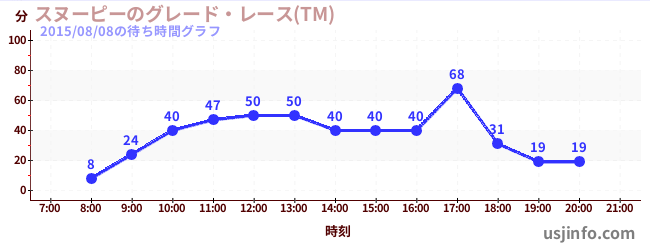 • スヌーピーのグレード・レース(TM)$B$N(B2015年08月08日の待ち時間