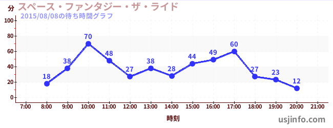 • スペース・ファンタジー・ザ・ライド$B$N(B2015年08月08日の待ち時間