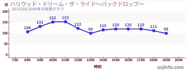 • ハリウッド・ドリーム・ザ・ライド〜バックドロップ〜$B$N(B2015年08月10日の待ち時間