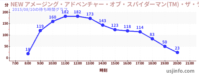 • NEW アメージング・アドベンチャー・オブ・スパイダーマン(TM)・ザ・ライド 4K3D$B$N(B2015年08月10日の待ち時間