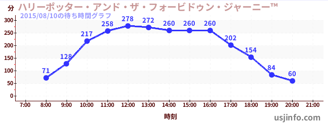 • ハリーポッター・アンド・ザ・フォービドゥン・ジャーニー™$B$N(B2015年08月10日の待ち時間