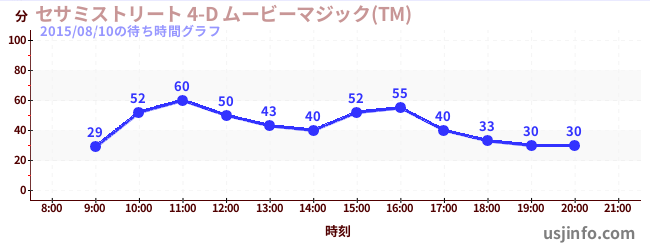 • セサミストリート 4-D ムービーマジック(TM)$B$N(B2015年08月10日の待ち時間