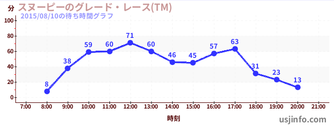 • スヌーピーのグレード・レース(TM)$B$N(B2015年08月10日の待ち時間