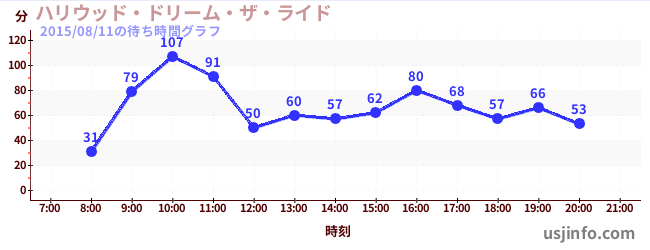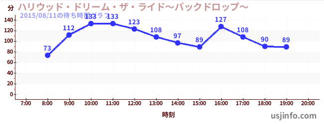 • ハリウッド・ドリーム・ザ・ライド〜バックドロップ〜$B$N(B2015年08月11日の待ち時間