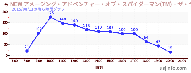 • NEW アメージング・アドベンチャー・オブ・スパイダーマン(TM)・ザ・ライド 4K3D$B$N(B2015年08月11日の待ち時間