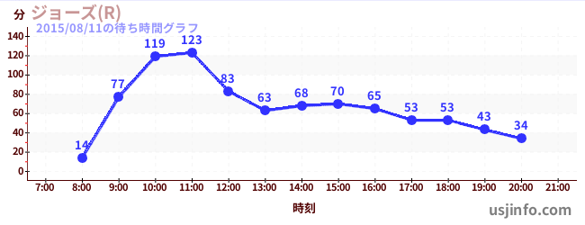 • ジョーズ(R)$B$N(B2015年08月11日の待ち時間