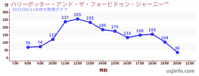 • ハリーポッター・アンド・ザ・フォービドゥン・ジャーニー™$B$N(B2015年08月11日の待ち時間