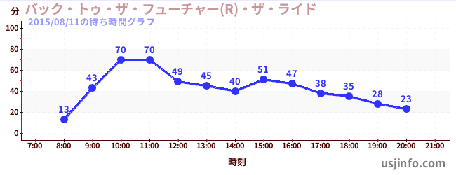 • バック・トゥ・ザ・フューチャー(R)・ザ・ライド$B$N(B2015年08月11日の待ち時間