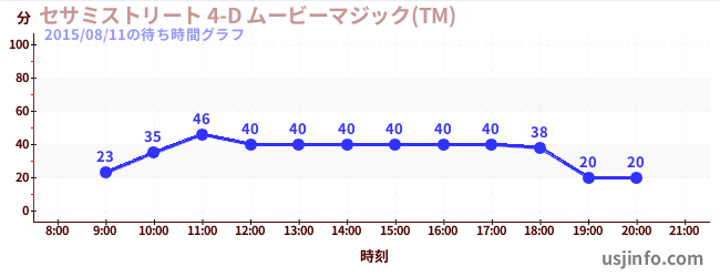 • セサミストリート 4-D ムービーマジック(TM)$B$N(B2015年08月11日の待ち時間