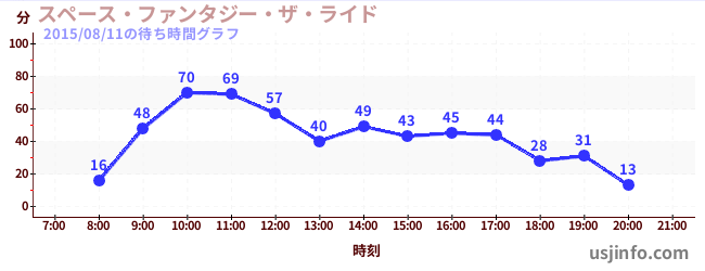 • スペース・ファンタジー・ザ・ライド$B$N(B2015年08月11日の待ち時間