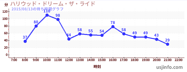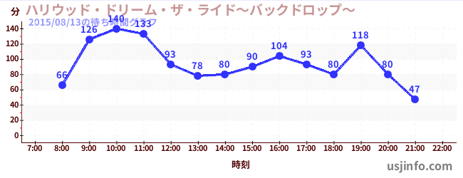 • ハリウッド・ドリーム・ザ・ライド〜バックドロップ〜$B$N(B2015年08月13日の待ち時間