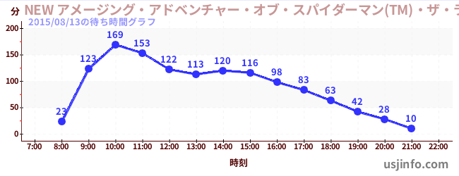 • NEW アメージング・アドベンチャー・オブ・スパイダーマン(TM)・ザ・ライド 4K3D$B$N(B2015年08月13日の待ち時間