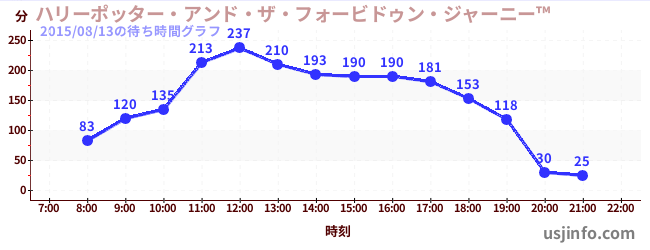 • ハリーポッター・アンド・ザ・フォービドゥン・ジャーニー™$B$N(B2015年08月13日の待ち時間
