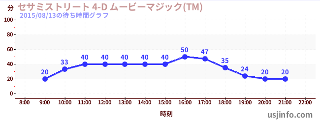 • セサミストリート 4-D ムービーマジック(TM)$B$N(B2015年08月13日の待ち時間