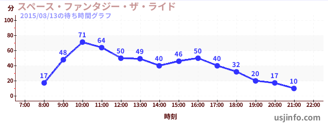 • スペース・ファンタジー・ザ・ライド$B$N(B2015年08月13日の待ち時間