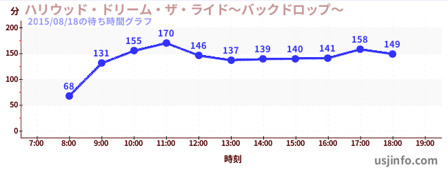 • ハリウッド・ドリーム・ザ・ライド〜バックドロップ〜$B$N(B2015年08月18日の待ち時間