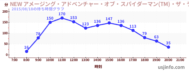 • NEW アメージング・アドベンチャー・オブ・スパイダーマン(TM)・ザ・ライド 4K3D$B$N(B2015年08月18日の待ち時間