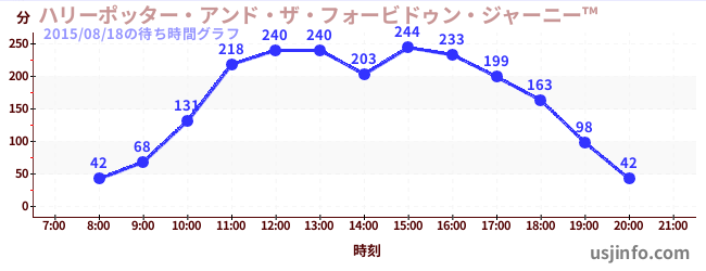 • ハリーポッター・アンド・ザ・フォービドゥン・ジャーニー™$B$N(B2015年08月18日の待ち時間