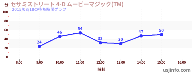 • セサミストリート 4-D ムービーマジック(TM)$B$N(B2015年08月18日の待ち時間
