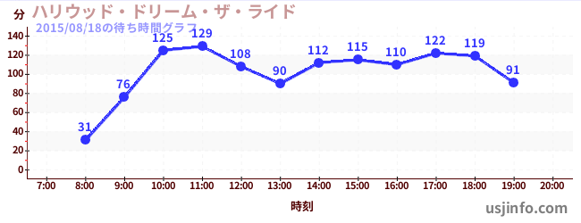 • ハリウッド・ドリーム・ザ・ライド$B$N(B2015年08月18日の待ち時間