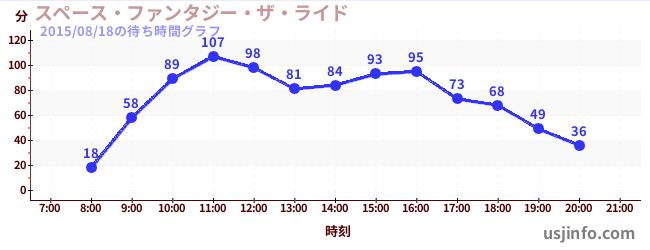 • スペース・ファンタジー・ザ・ライド$B$N(B2015年08月18日の待ち時間