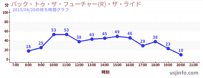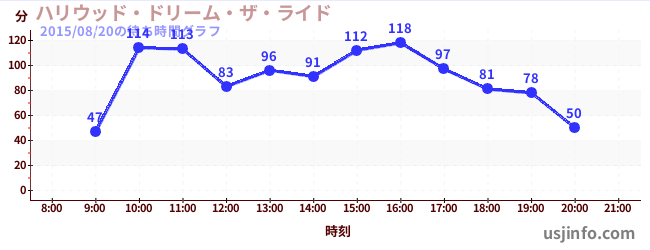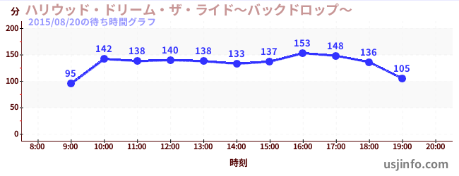 • ハリウッド・ドリーム・ザ・ライド〜バックドロップ〜$B$N(B2015年08月20日の待ち時間