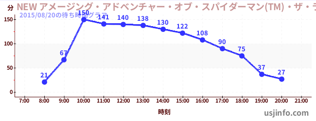 • NEW アメージング・アドベンチャー・オブ・スパイダーマン(TM)・ザ・ライド 4K3D$B$N(B2015年08月20日の待ち時間
