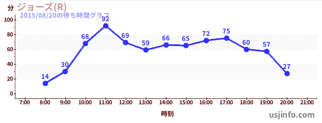 • ジョーズ(R)$B$N(B2015年08月20日の待ち時間