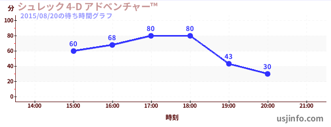 • シュレック 4-D アドベンチャー™$B$N(B2015年08月20日の待ち時間