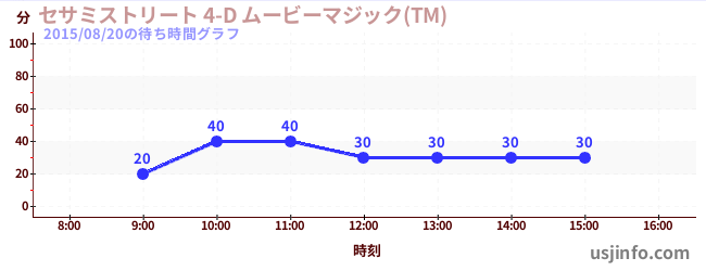 • セサミストリート 4-D ムービーマジック(TM)$B$N(B2015年08月20日の待ち時間