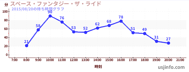• スペース・ファンタジー・ザ・ライド$B$N(B2015年08月20日の待ち時間