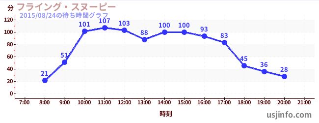 • フライング・スヌーピー$B$N(B2015年08月24日の待ち時間