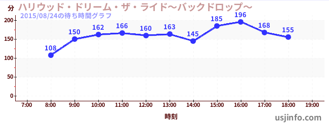 • ハリウッド・ドリーム・ザ・ライド〜バックドロップ〜$B$N(B2015年08月24日の待ち時間