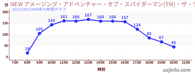 • NEW アメージング・アドベンチャー・オブ・スパイダーマン(TM)・ザ・ライド 4K3D$B$N(B2015年08月24日の待ち時間