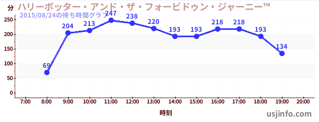 • ハリーポッター・アンド・ザ・フォービドゥン・ジャーニー™$B$N(B2015年08月24日の待ち時間