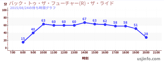 • バック・トゥ・ザ・フューチャー(R)・ザ・ライド$B$N(B2015年08月24日の待ち時間