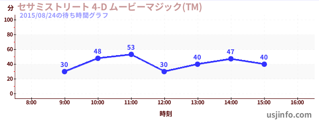 • セサミストリート 4-D ムービーマジック(TM)$B$N(B2015年08月24日の待ち時間