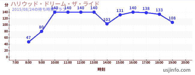 • ハリウッド・ドリーム・ザ・ライド$B$N(B2015年08月24日の待ち時間