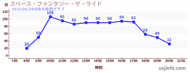 • スペース・ファンタジー・ザ・ライド$B$N(B2015年08月24日の待ち時間