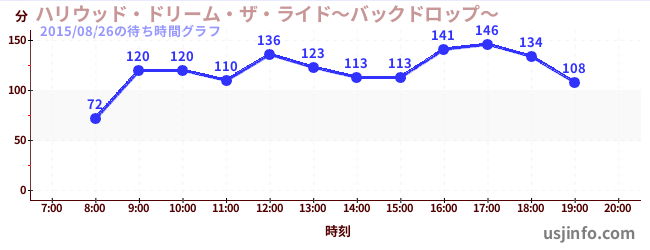 • ハリウッド・ドリーム・ザ・ライド〜バックドロップ〜$B$N(B2015年08月26日の待ち時間