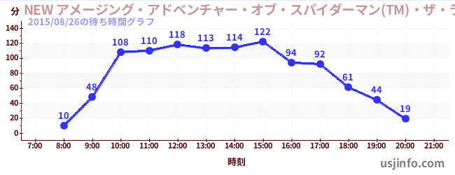 • NEW アメージング・アドベンチャー・オブ・スパイダーマン(TM)・ザ・ライド 4K3D$B$N(B2015年08月26日の待ち時間