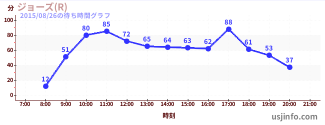 • ジョーズ(R)$B$N(B2015年08月26日の待ち時間