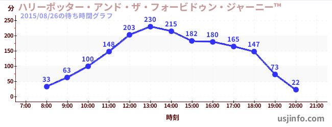 • ハリーポッター・アンド・ザ・フォービドゥン・ジャーニー™$B$N(B2015年08月26日の待ち時間
